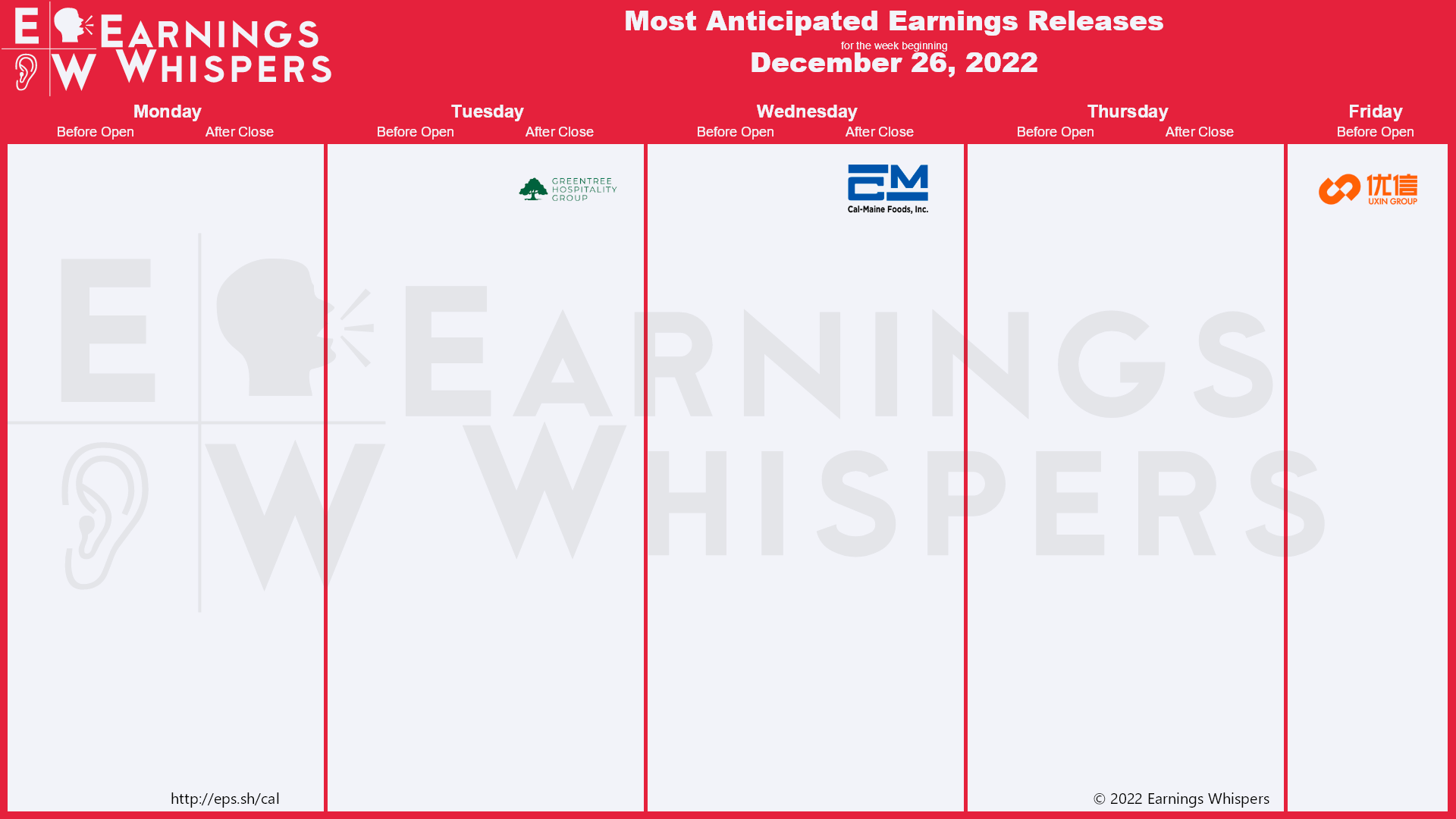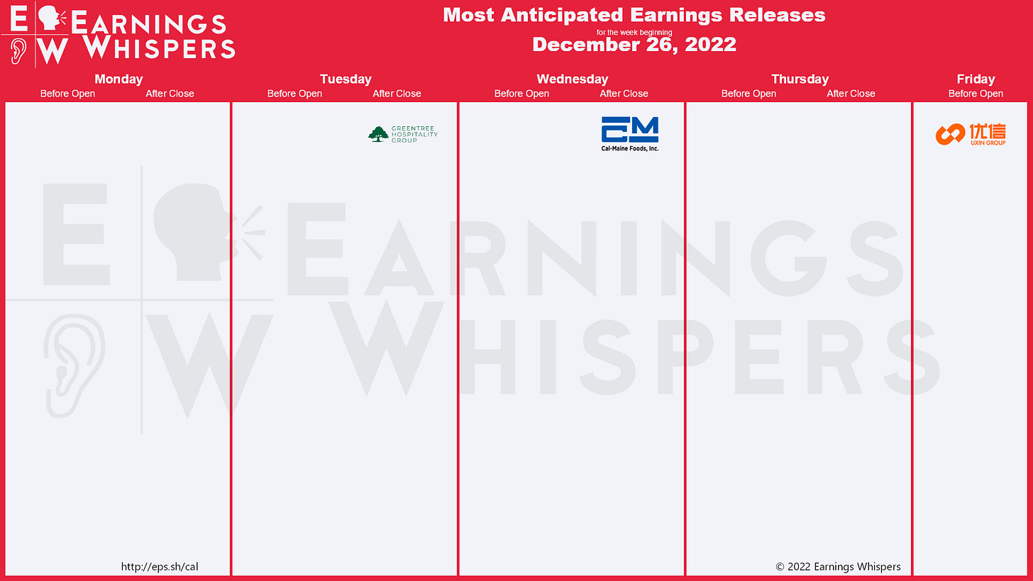 Next week is set to be a quiet week as the market looks to wrap up its 2022 year. Market participants will be eyeing updates on real estate data, including S&P CoreLogic’s Case-Schiller Index, Federal Housing Finance Agency’s (FHFA) House Price Index, and pending home sales.