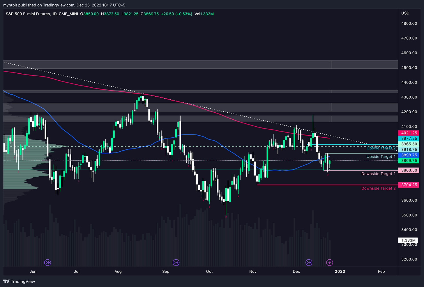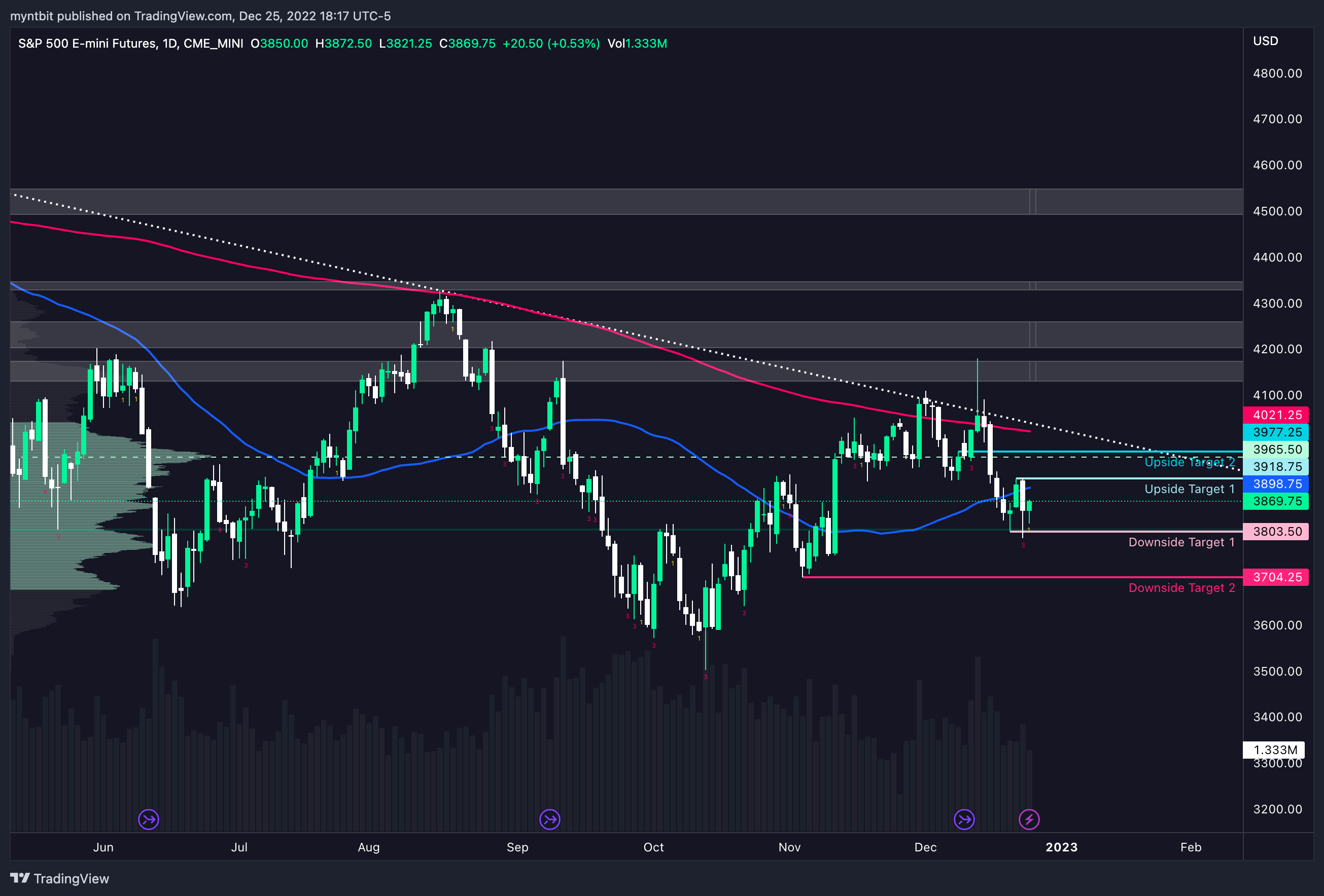 Once again, the S&P 500 slipped below the 3,800 level, but soon found support as the new home sales and consumer sentiment data bolstered investor sentiment and spurred some bargain hunting interest. The major indices finished modestly higher on Friday, taking a positive first step during the Santa Claus rally period (last five trading days of the year plus the first two trading sessions of the new year).