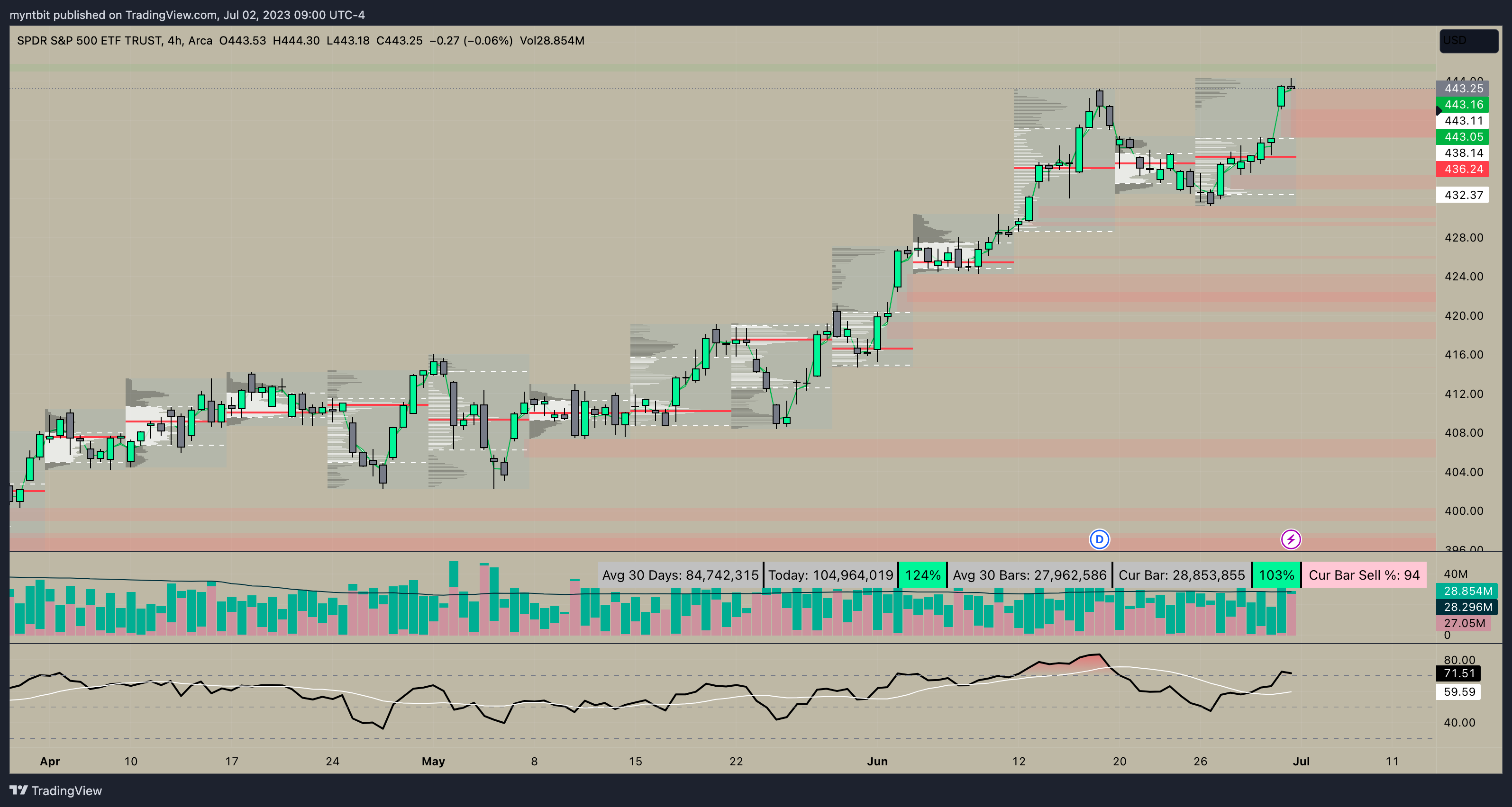 🐻 Downside: However, if the price falls below 440, it could lead to a decline toward 438 and then a possible test of a critical support level at 435. 438 has a gap on the downside on SPY