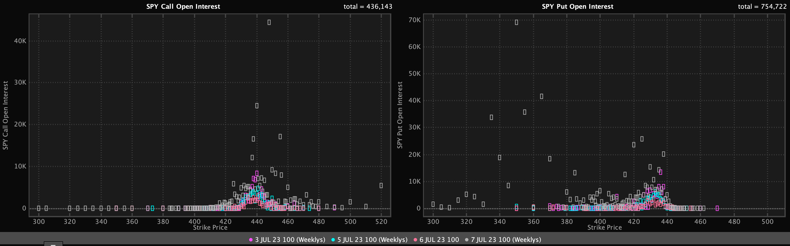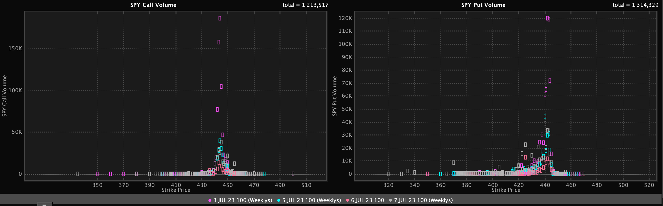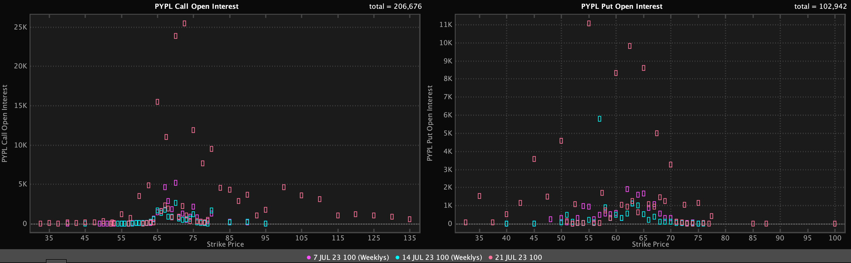 Volume: the volume for the upcoming week's expiry is 447,247 puts vs 173,885 calls suggesting a bearish sentiment.
