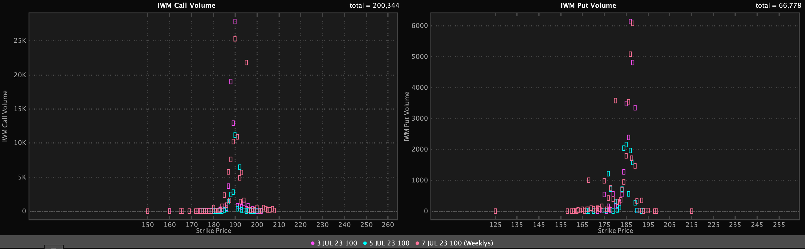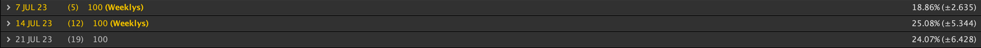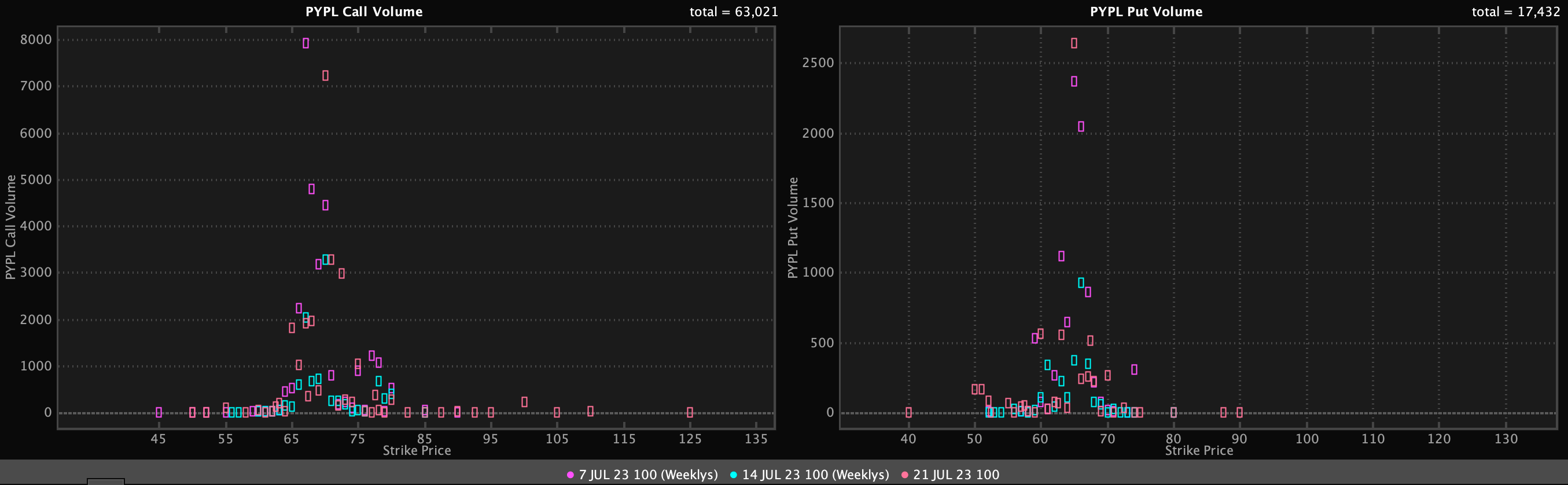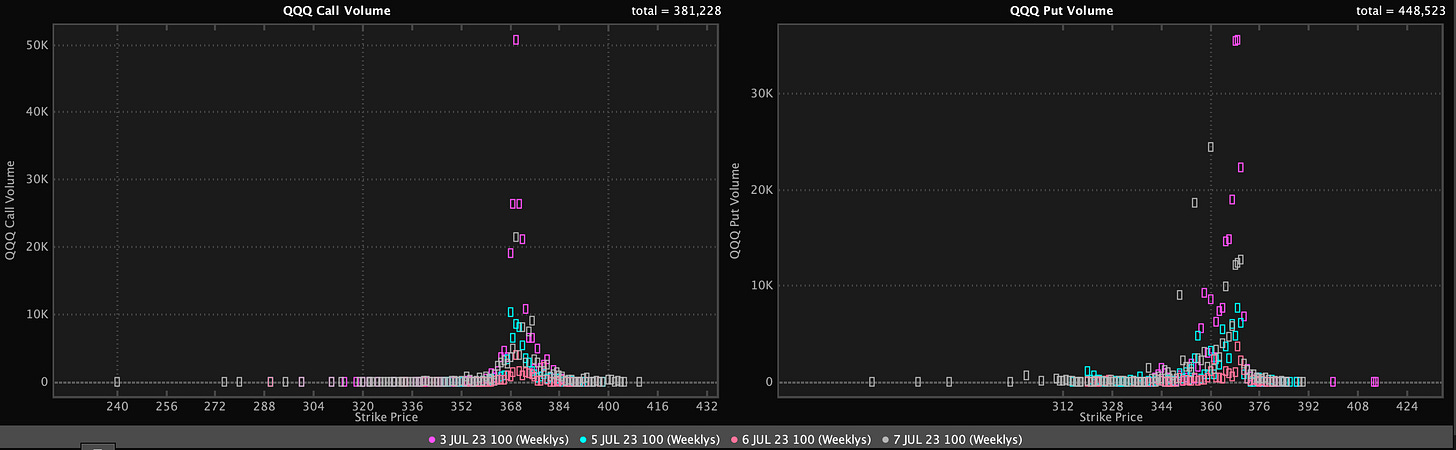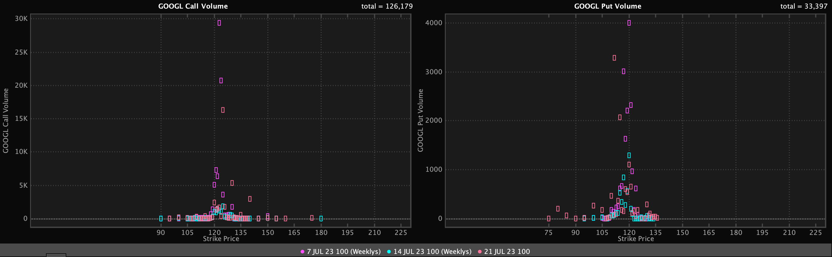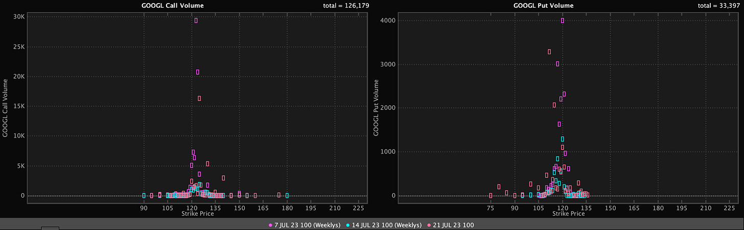 Volume: the volume for weekly expiry till Jul 21 is 33,397 puts vs 126,179 calls suggesting a bullish position.