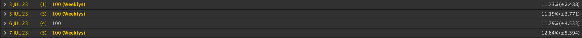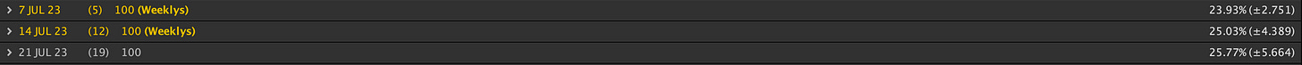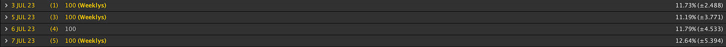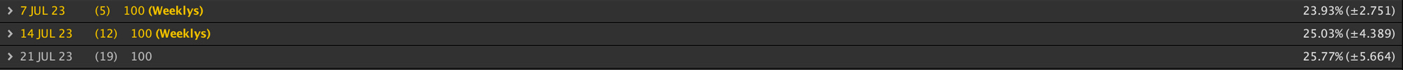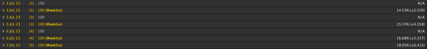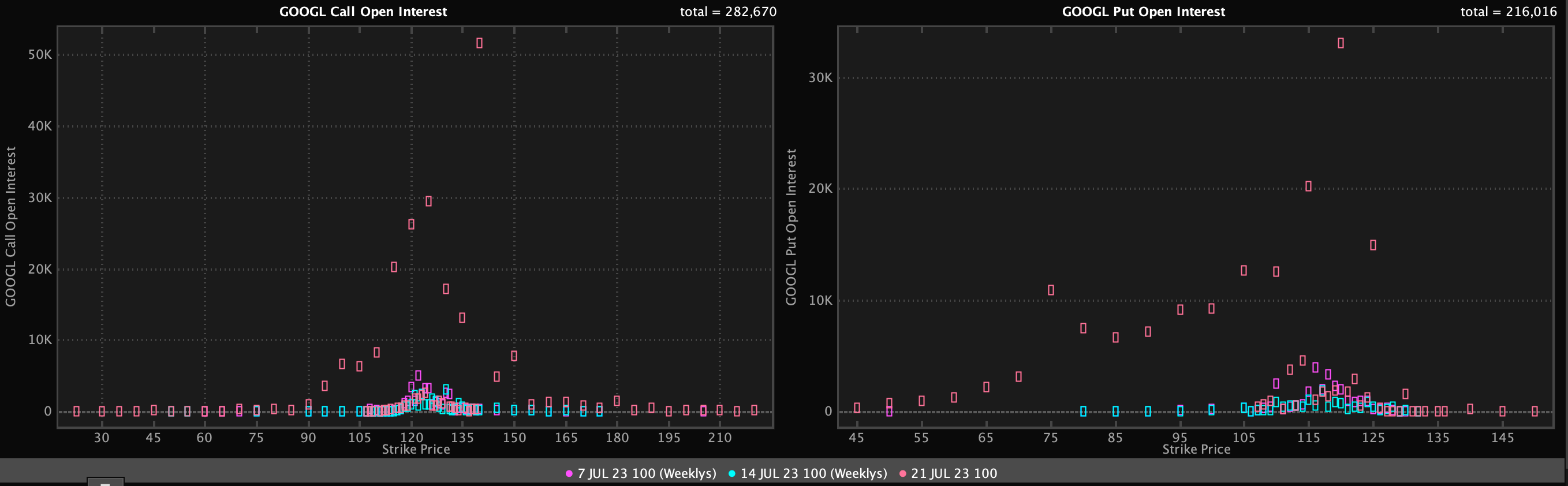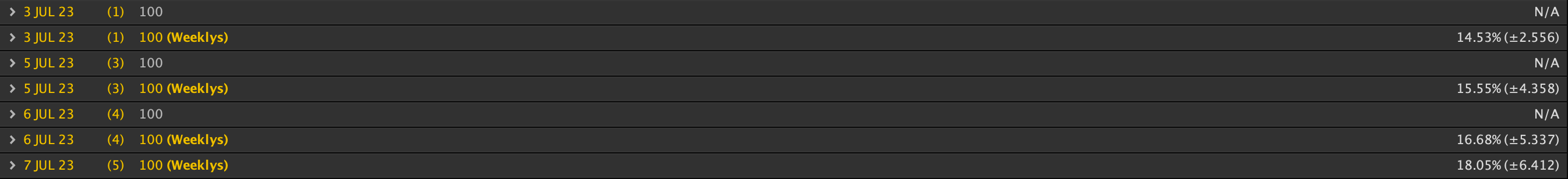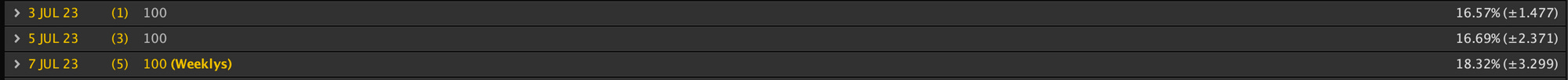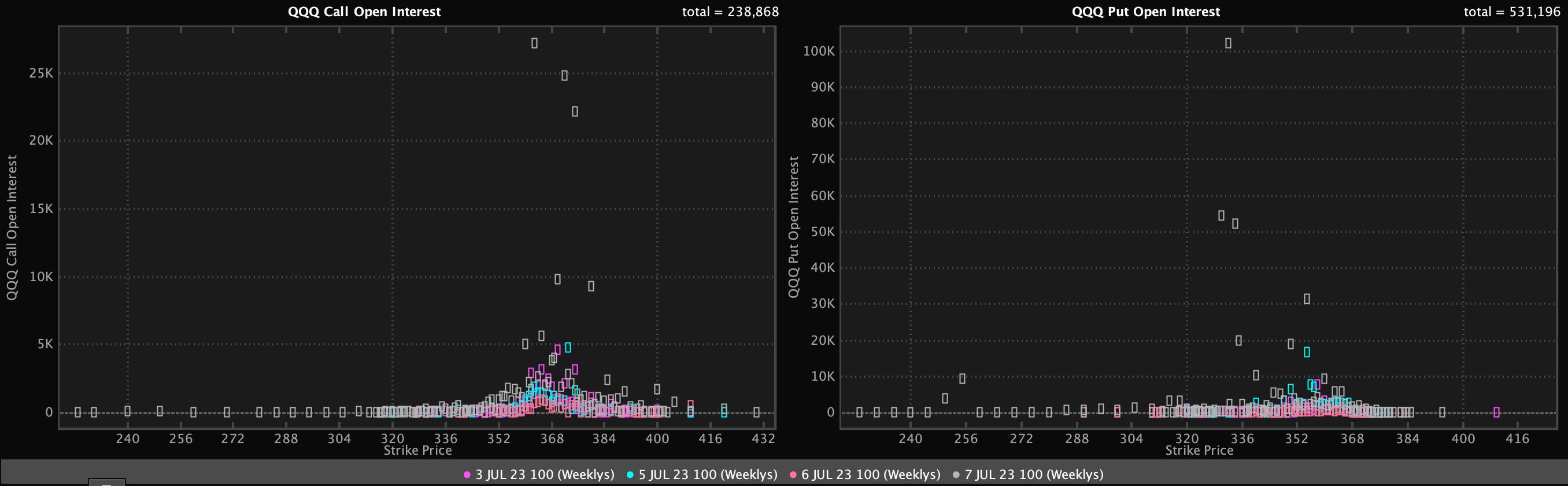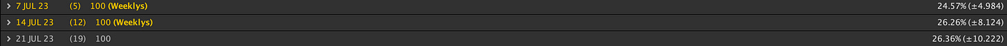 Volume: the volume for weekly expiry till Jul 21 is 33,397 puts vs 126,179 calls suggesting a bullish position.