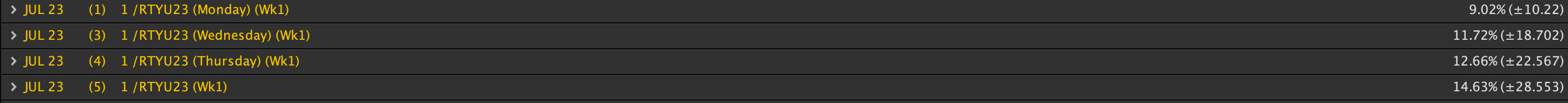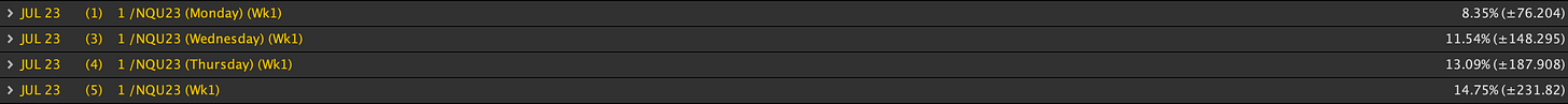 Expected Move: the expected move for the upcoming week and the next few weeks are listed below.