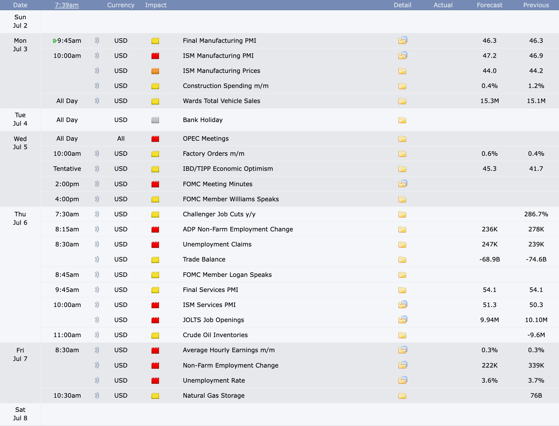 The main events to watch during the shortened week will be the release of the June jobs report and the Federal Open Market Committee's meeting minutes from June 14th. Investors will also receive updates on the labor market through June's ADP employment change and May's JOLTS job openings.