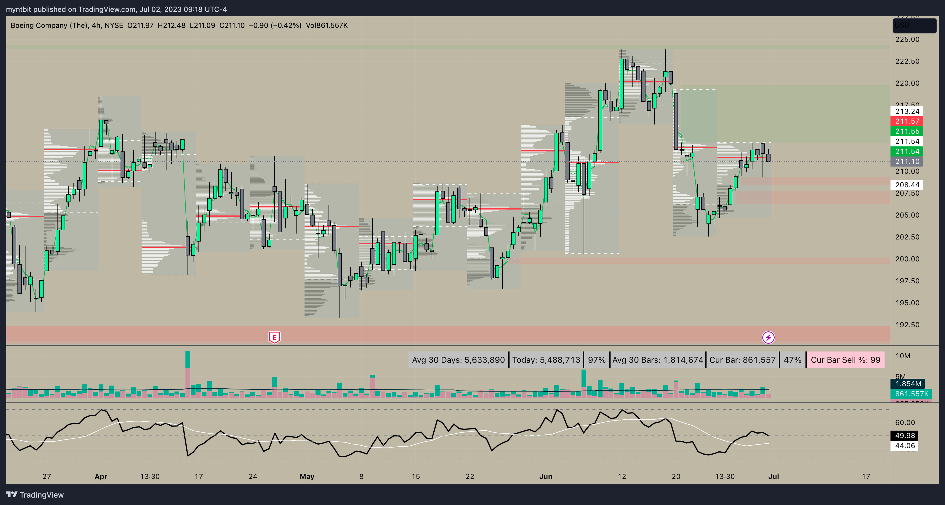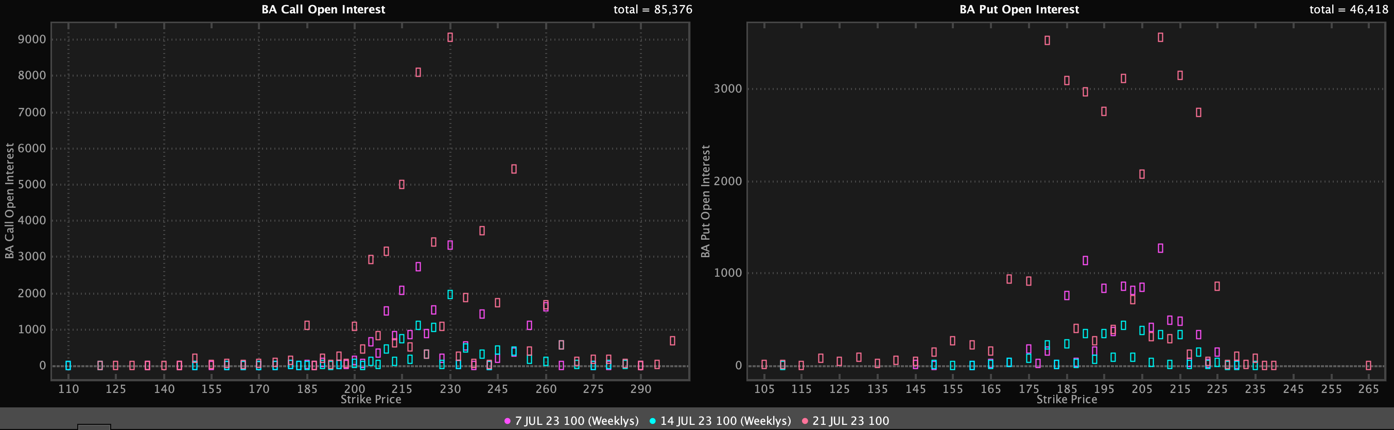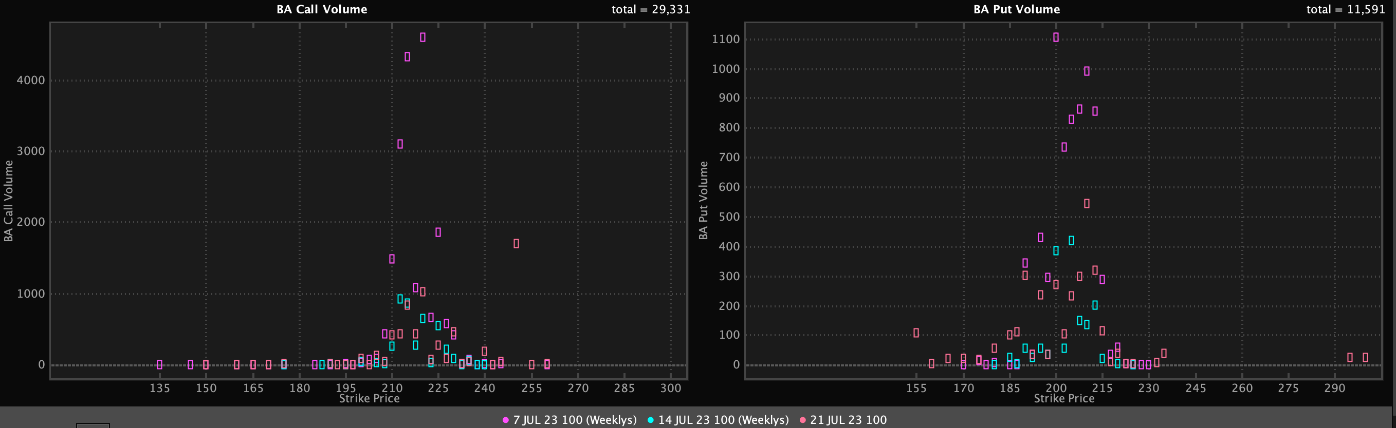BA is currently range bound between 194 to 224, until one of those levels break - long the bottom/short the top.